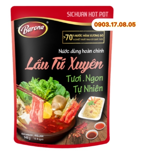 Nước dùng hoàn chỉnh Lẩu tứ xuyên Barona (180gr)-Hộp 10